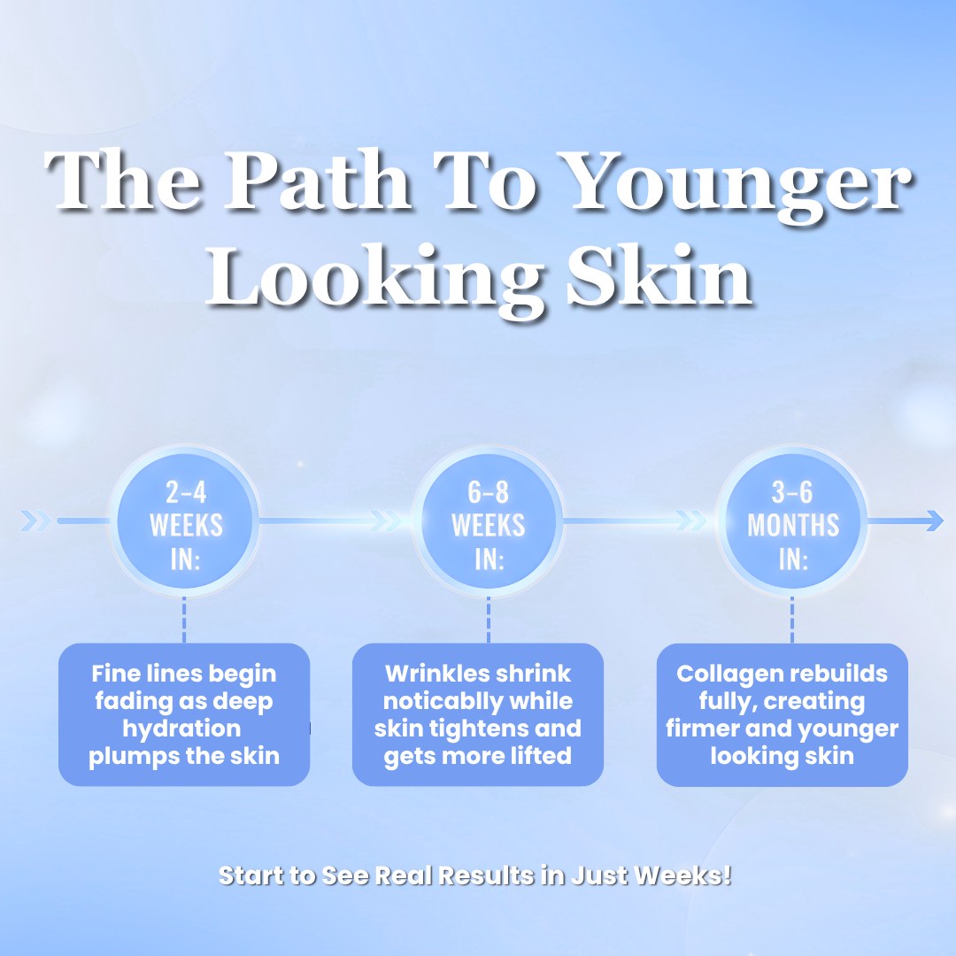 Most women notice smoother, softer skin within 2-4 weeks of daily use. Real wrinkle reduction and visible lifting start showing up around 6-8 weeks.